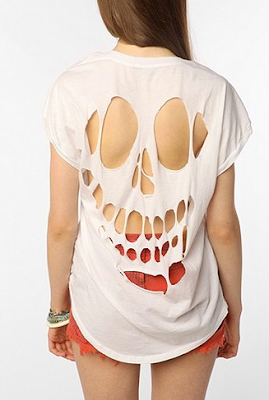 The skull cut-out tee became instantly popular this season within weeks, there is now so many different versions of this cut-out; sweatshirts, tanks, tees, leopard print, neon, etc. I thought this was a really cute idea when I first saw it but I didn't know if I would wear one much if I bought one, so I made one myself! It was surprisingly one of the easiest DIYs I've done yet. Ironically the most time consuming though. The best part is you don't need to purchase anything for this DIY, the only thing you might need is a plain tee shirt of your choice if you don't have one already. In my case I just used an old black tee shirt.